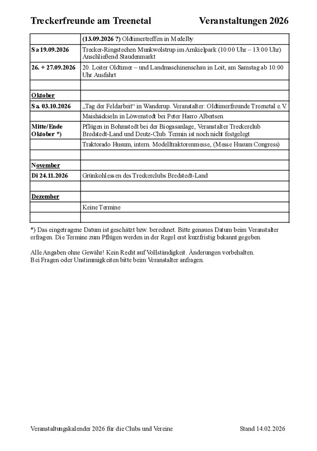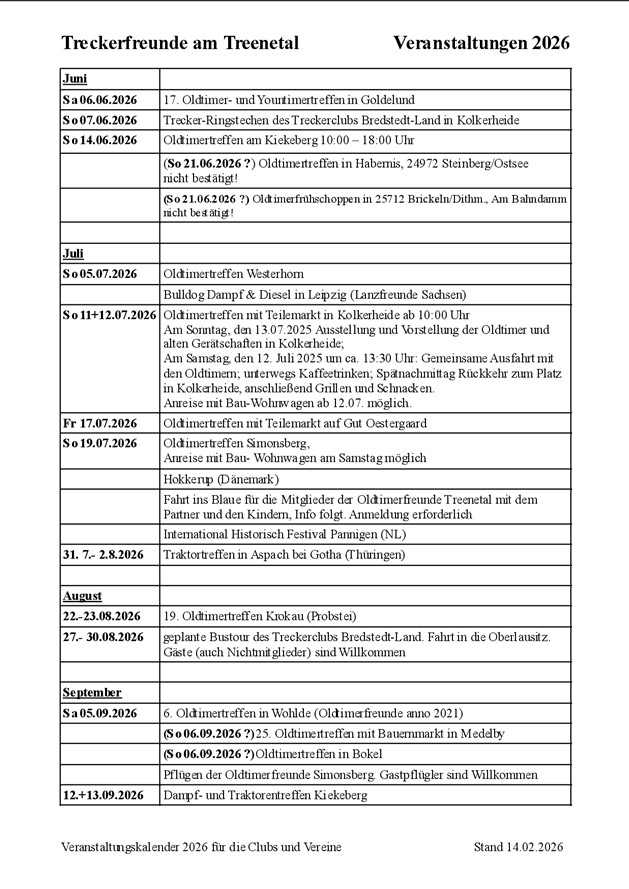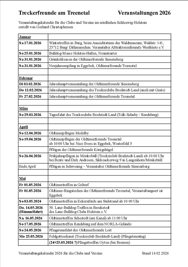 Die diesjährigen Termine der Oldtimer Freunde und die Treffpunkte wurden uns von Herrn Gerhard Christophersen zur Verfügung gestellt.